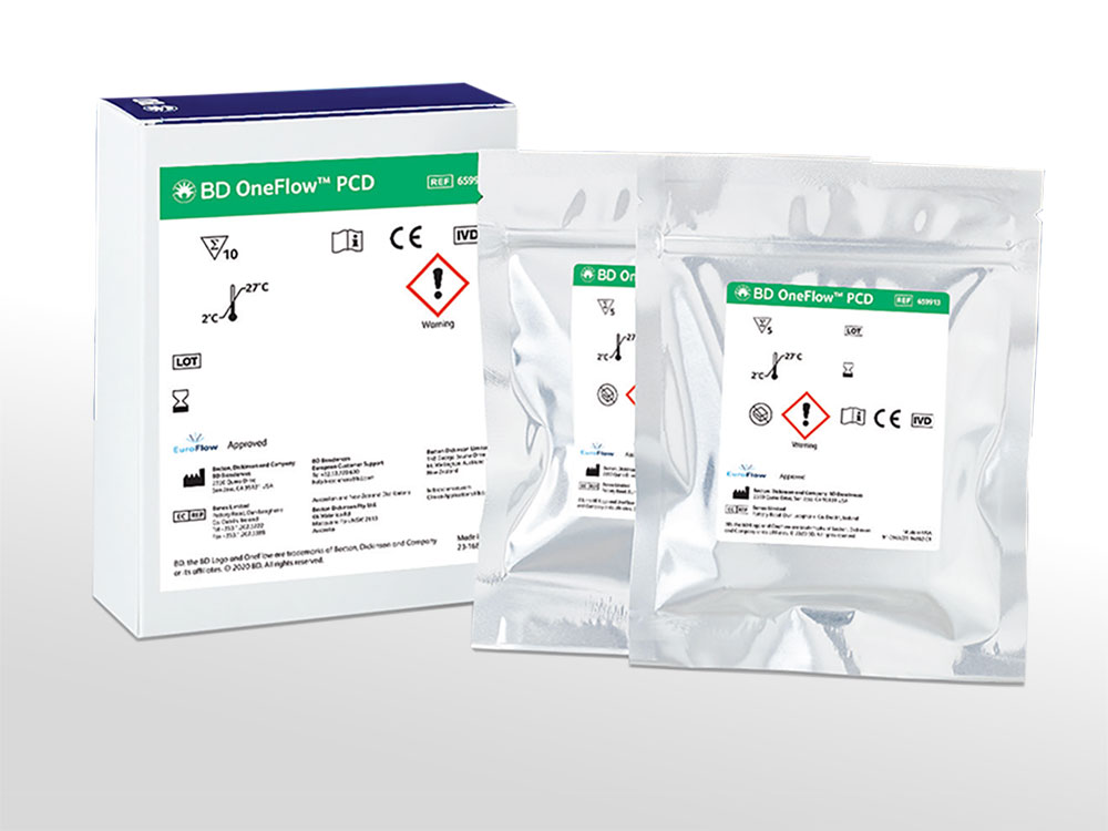 The BD OneFlow™ PCD Tube is part of the innovative BD OneFlow™ Solution, a comprehensive set of reagents, setup beads, protocols and assay templates to reproducibly set up the flow cytometer and stain, acquire and analyze patient specimens for immunophenotyping of normal and aberrant cell populations. It is built on the research and validation work of the EuroFlow™ Consortium on the characterization of hematological malignancies for improved accurate diagnosis.1*
