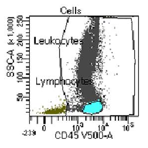 | CD45 | BD Horizon V500-C | 2Dl (anti-HLe-1) | Mature lymphocytes, B-cell precursor |