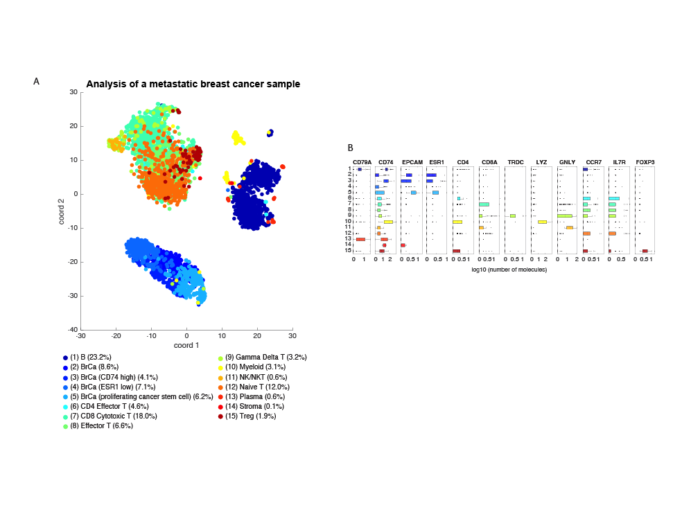 Example data from analysis of a lymph node containing metastatic BRCA cells using the BD Rhapsody™ Onco-BC Targeted Panel