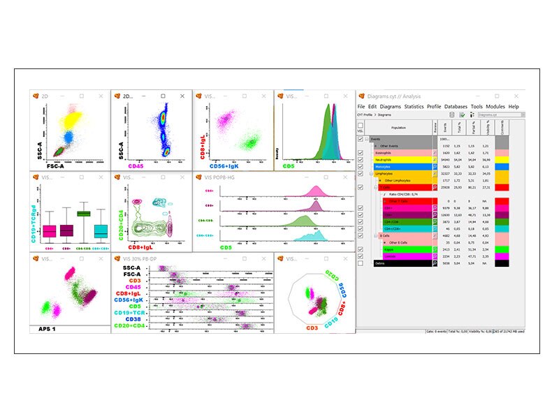 - Manual analysis: As an aid in the diagnosis and monitoring of oncohaematological diseases and screening of suspected primary immunodeficiencies (CE-IVD analysis) and in the analysis of any user-defined assays.
