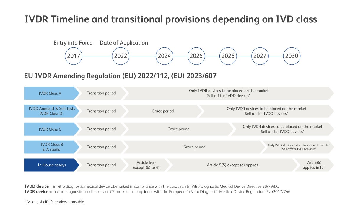 EU IVDR Amending Regulations (EU) 2022/112 and (EU) 2023/607 expands the scope of the grace period to certain devices and the abolishment of the sell-off provisions of IVDR. Consequently, devices placed on the market before the end of the transition period can be made further available on the market without a time restriction.