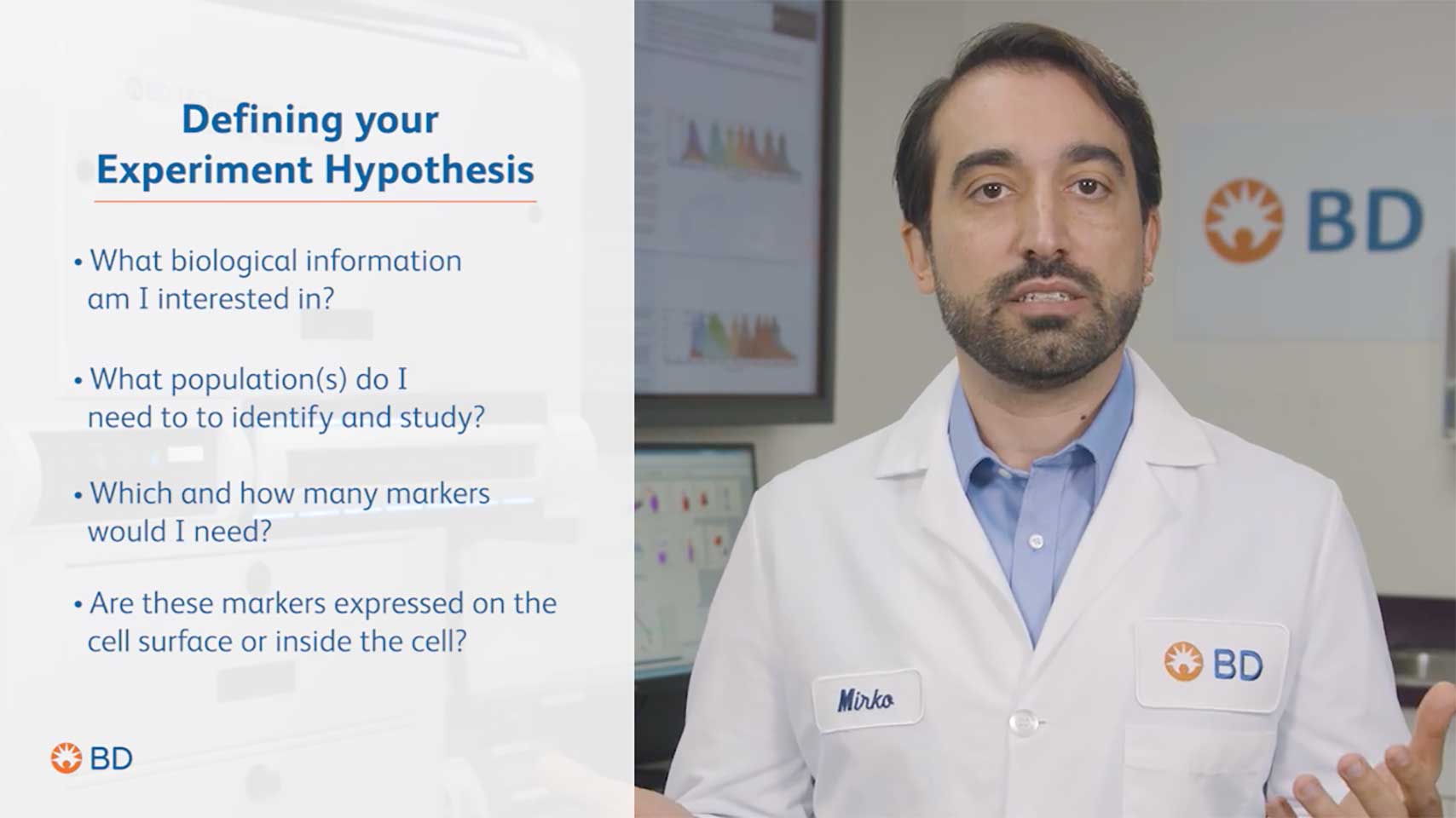 In the following series of videos, you can learn the essential principles of how to design a flow cytometry panel from BD Biosciences scientists. Developing a panel design for protein analysis involves several steps to ensure the selection of antibodies that specifically recognize the target antigens with high affinity and minimal cross-reactivity, and includes:
