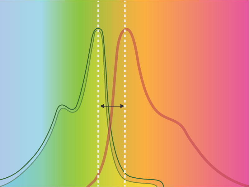 A tool that readily allows viewing histograms representing the absorption and emission spectra for each BD fluorochrome. Enables easy decision making on which fluorochromes to use based on their relative emission spectra.