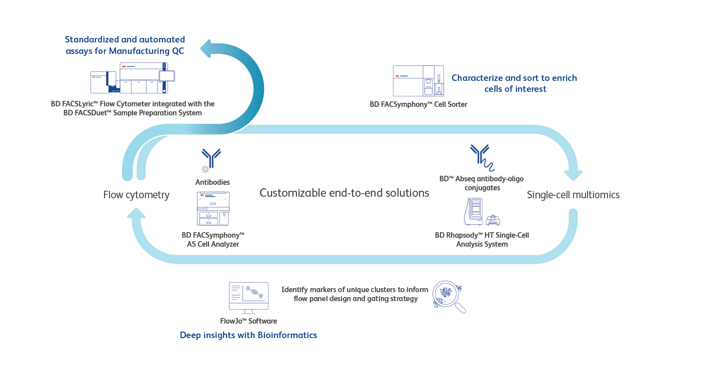 High-dimensional experiments result in more data to analyze, visualize and organize. Using the advanced computational tools within FlowJo™ Software, the leading software for flow cytometry analysis,* or Data Analysis pipelines, a tool providing visualization and tertiary analysis for single-cell multiomics analysis, you can unlock the insights from your data, with accessible features across a wide breadth of research applications. FlowJo™ Software enables flow cytometry data analysis with accessible features for immunophenotyping, cell cycle, proliferation, kinetics studies, quantitative population comparison, plate screening assays and more. Create publication worthy graphics using advanced algorithms through our plugin interface to analyze your high-dimensional data with the latest techniques to drive your research and discovery forward.